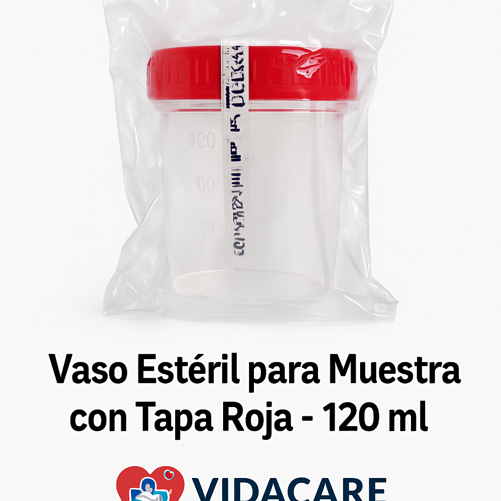 🏷️ Vaso Estéril para Muestra con Tapa Roja – 120 ml