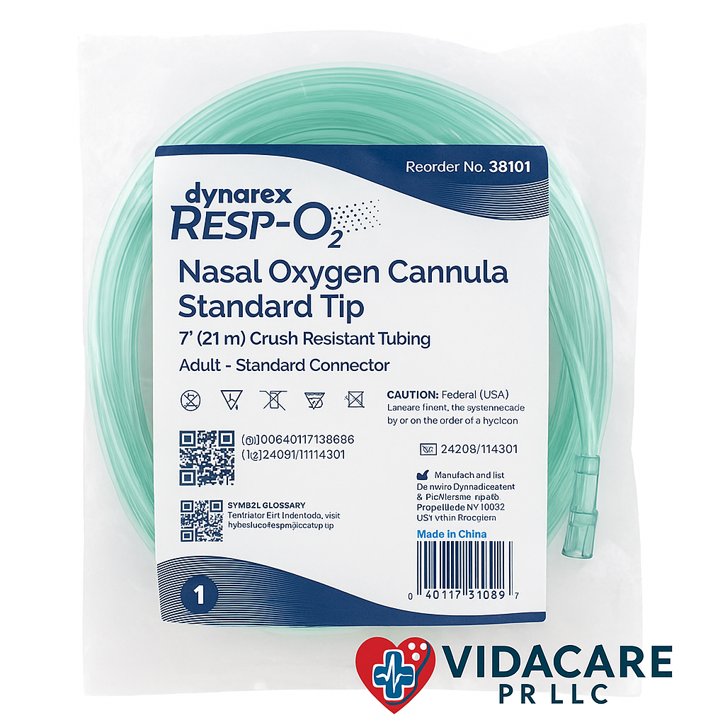 Cánula Nasal Dynarex Resp‑O₂ Adulto – 7’ Antitorceduras, Conector Estándar