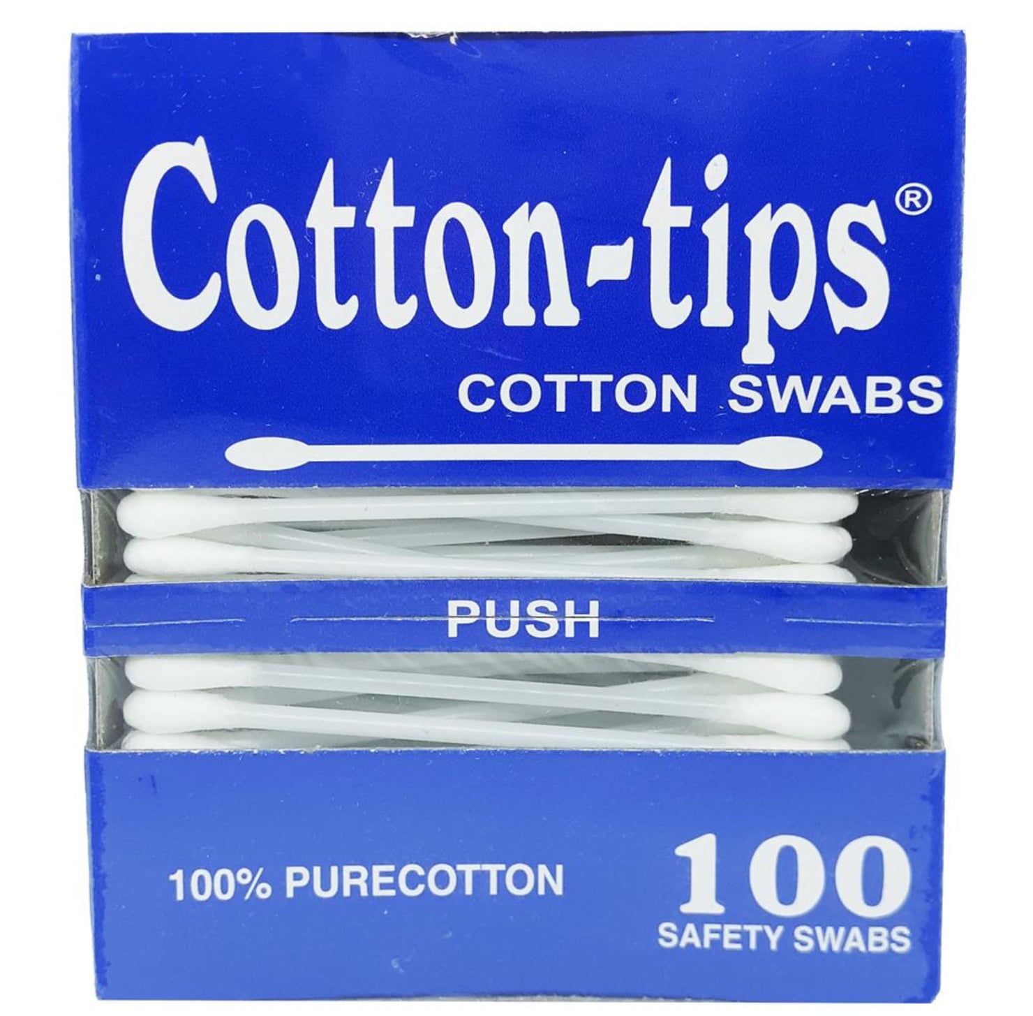 Los Cotton-Tips Cotton Swabs son bastoncillos de algodón 100% puro, diseñados para múltiples usos de higiene personal, limpieza de heridas, aplicación de medicamentos tópicos y cuidados cosméticos. Presentación de 100 unidades en caja práctica y segura.