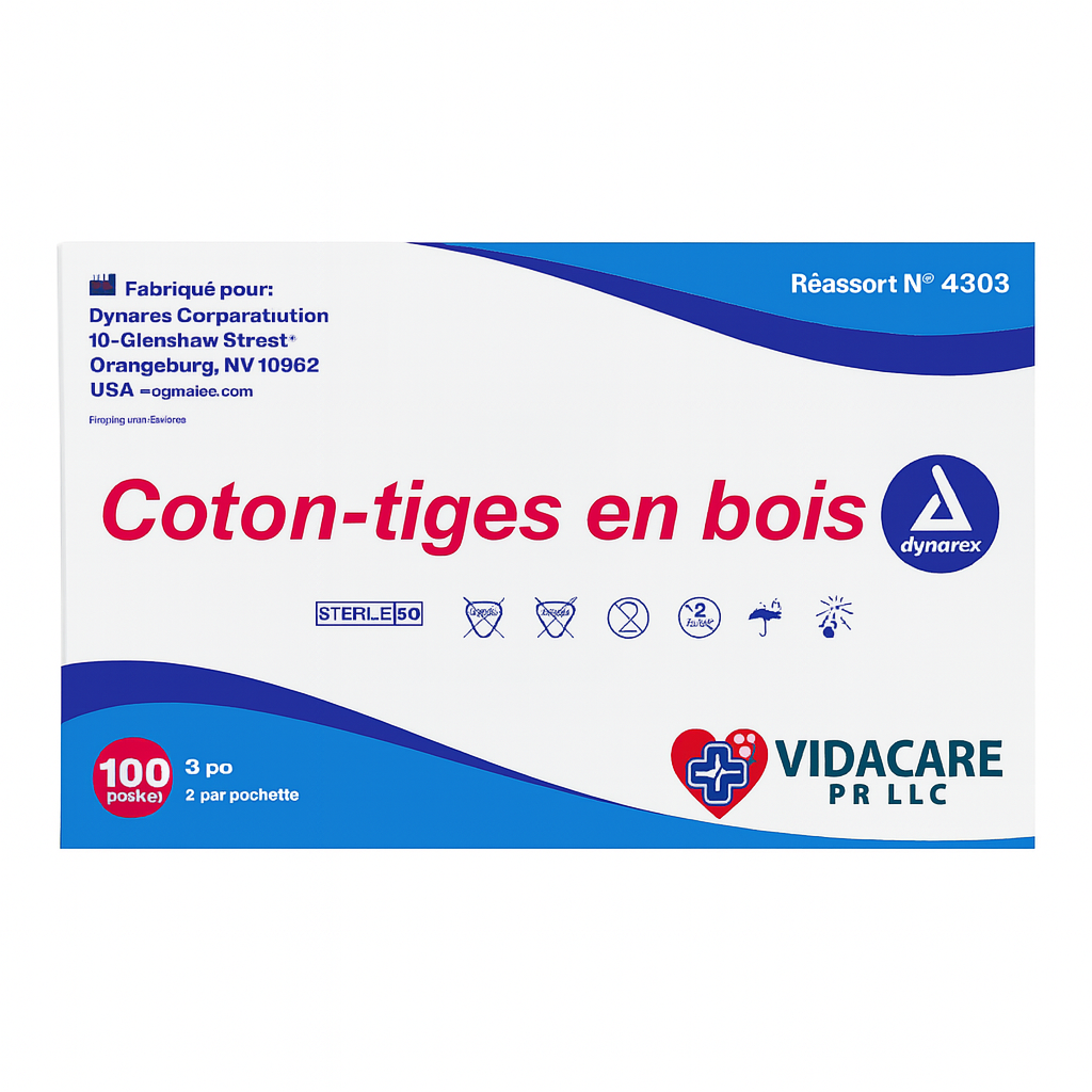 Dynarex Cotton Tipped Wood Applicators – 3″ Estériles (100 unidades)
