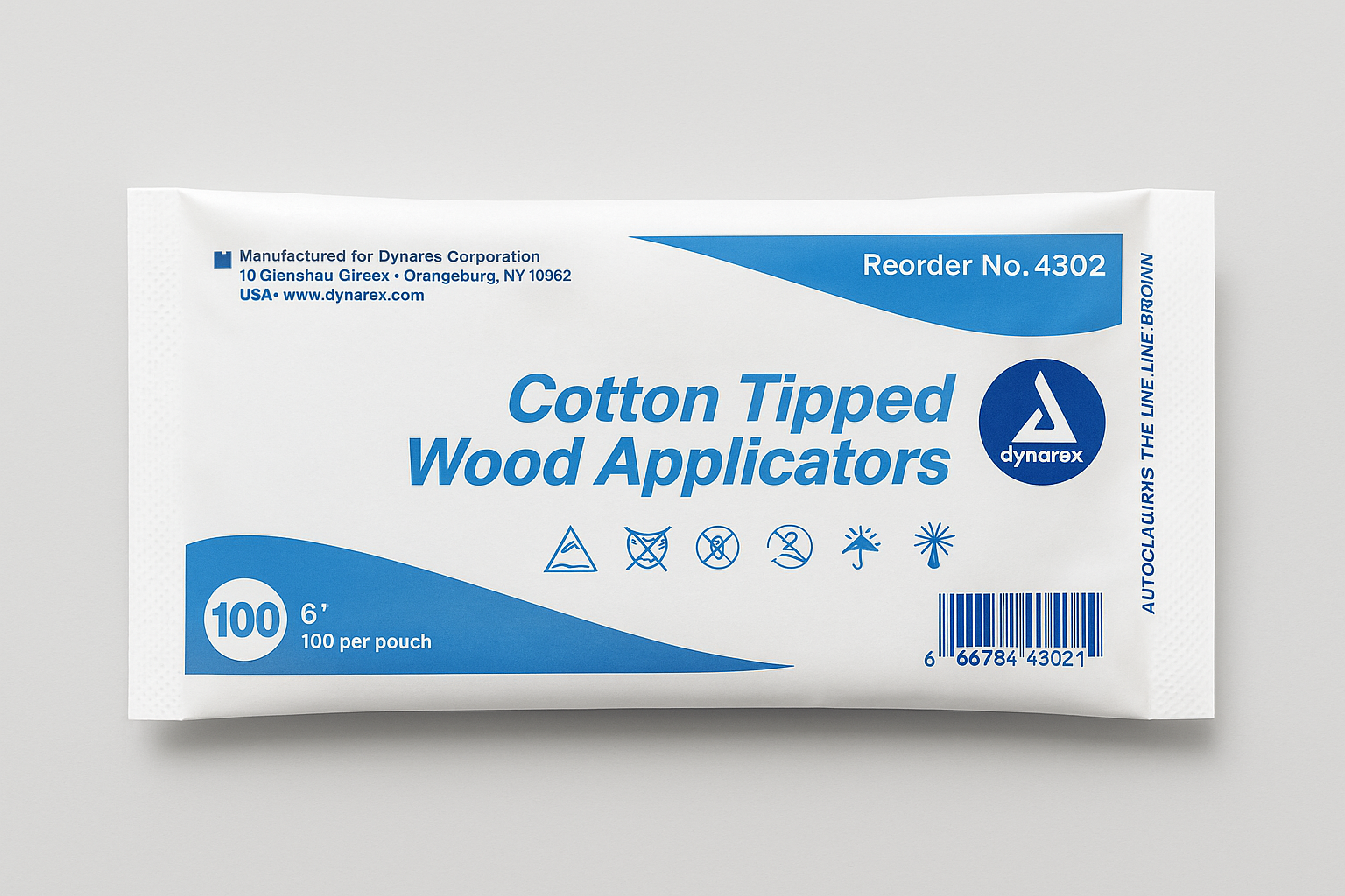 Aplicadores de madera Dynarex de alta calidad con punta de algodón altamente absorbente, longitud estándar de 6″ (15 cm). Presentación en bolsa autoclavable, ideal para uso no estéril en ambientes clínicos o profesionales: