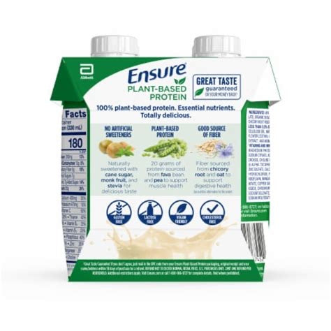 Disfruta de una nutrición vegana y deliciosa con los Ensure Plant‑Based Protein Shakes sabor Vainilla, presentados en pack de 4 botellas de 11 oz (330 mL) cada una: