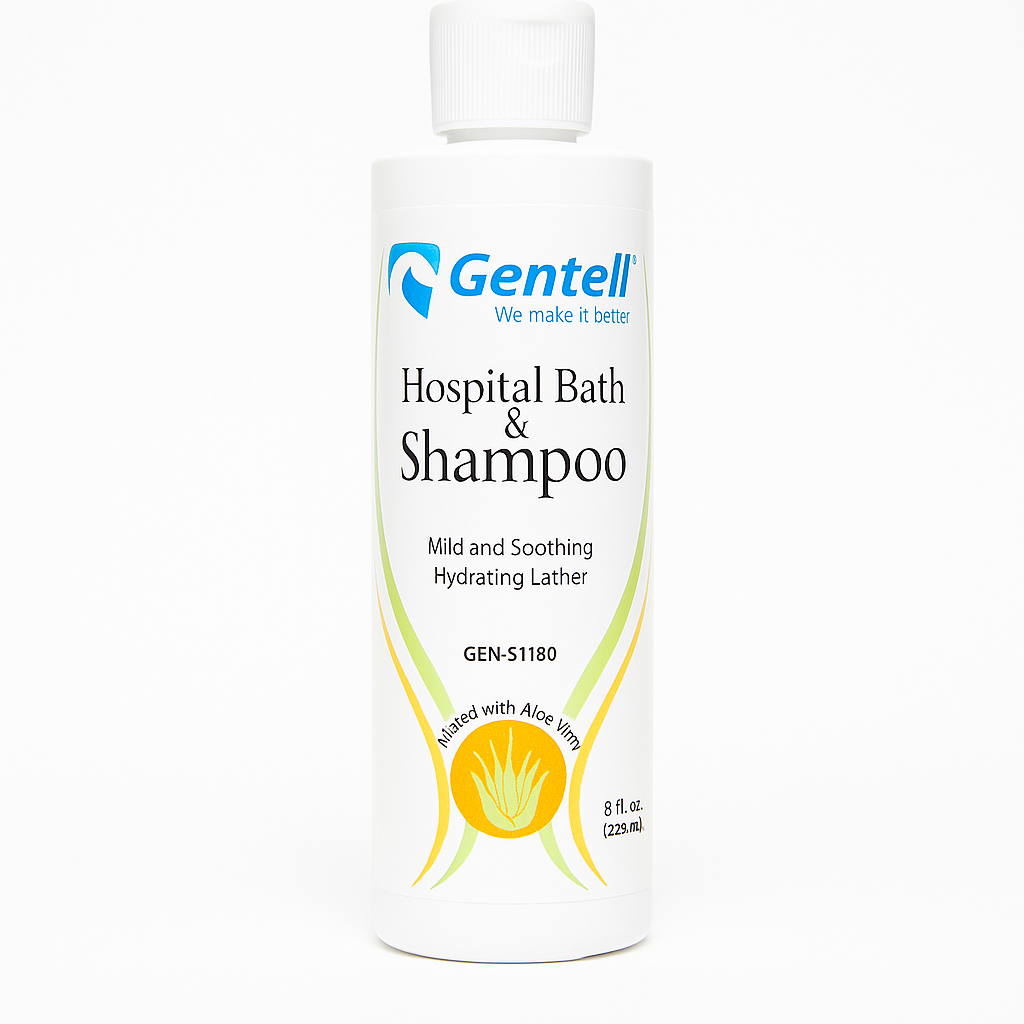 Limpieza suave y efectiva para el cuidado diario de pacientes. El Gentell Hospital Bath & Shampoo es una solución todo-en-uno con espuma hidratante que puede usarse tanto para baño corporal como para lavar el cabello. Su fórmula con aloe vera ayuda a calmar e hidratar la piel, ideal para personas encamadas o con piel sensible.