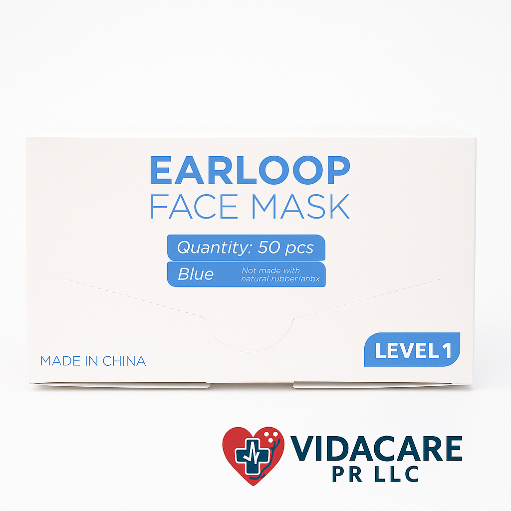 Caja de 50 mascarillas desechables con elástico en las orejas (earloop), ideales para uso médico general, protección respiratoria básica y uso diario: