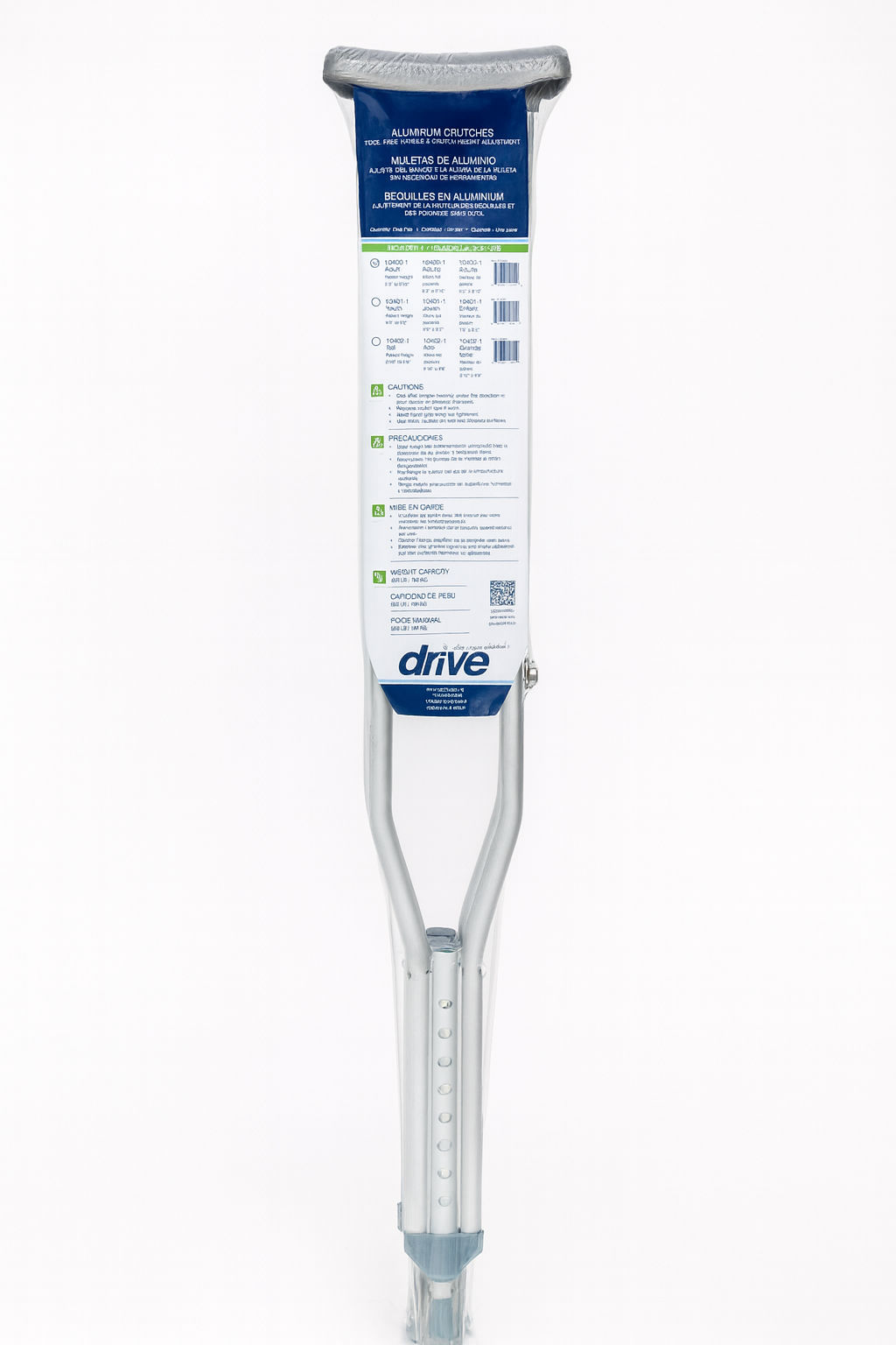 Las Muletas de Aluminio Drive Medical ofrecen soporte seguro y cómodo para una recuperación más fácil. Fabricadas en aluminio ligero y resistente, son fáciles de usar y ajustar según la altura del usuario. Incluyen almohadillas acolchadas en la axila, empuñaduras de espuma suave y puntas antideslizantes para mayor estabilidad.