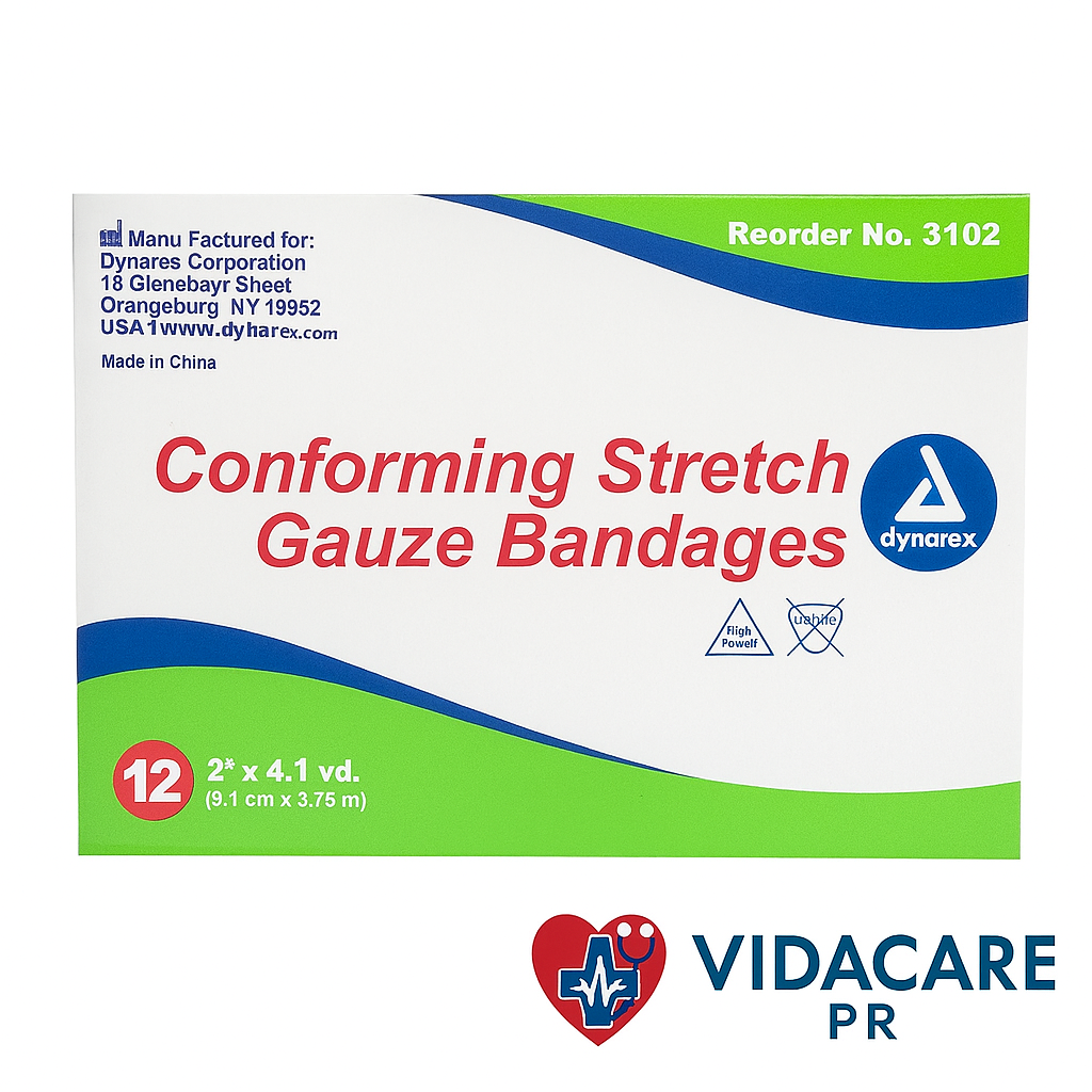 Nombre (Shopify): Dynarex Conforming Stretch Gauze Bandage – 2″ × 4.1 yds, No Estéril, Caja de 12 rollos