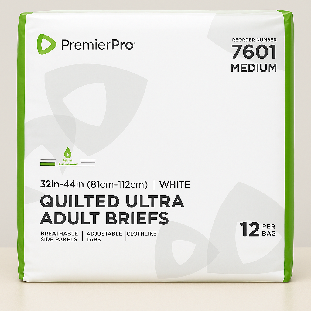 Los PremierPro Quilted Ultra Pañales para Adulto Medium brindan protección confiable, comodidad y discreción, ideales para el manejo de la incontinencia en el hogar o en centros de cuidado.