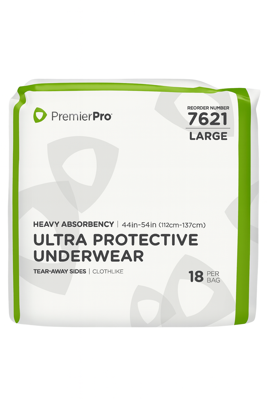Los PremierPro Ultra Protective Underwear (Reorder #7621) ofrecen máxima protección con diseño tipo ropa interior para mayor discreción y comodidad.