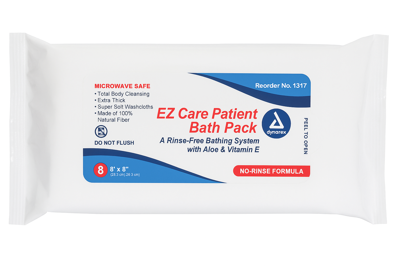 Las toallitas EZ Care Patient Bath Pack de Dynarex ofrecen una solución práctica y efectiva para la limpieza corporal sin necesidad de enjuague. Están enriquecidas con aloe y vitamina E, ideales para el cuidado de la piel de pacientes encamados, personas mayores o con movilidad limitada.