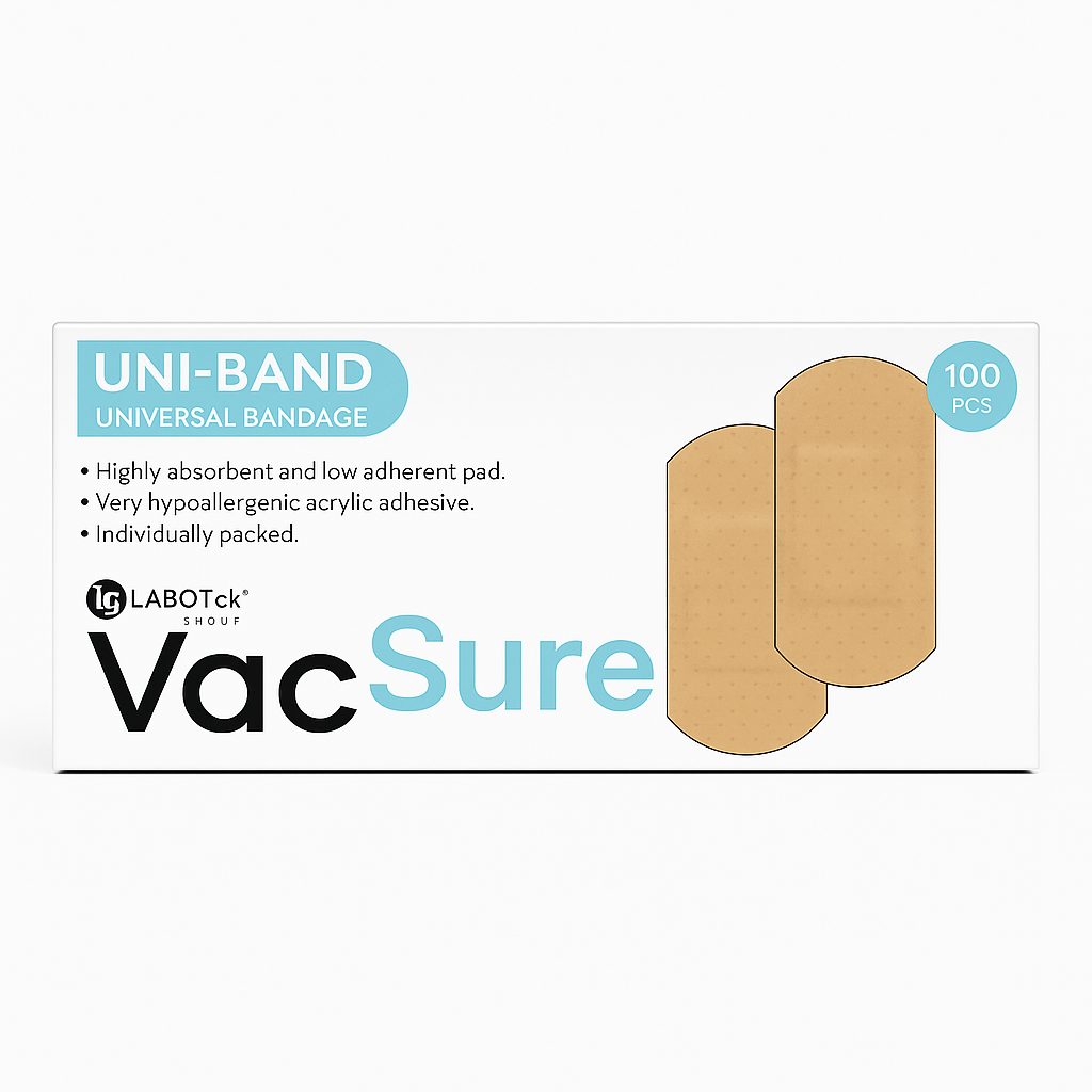 Las venditas Uni-Band de VacSure están diseñadas para cubrir y proteger pequeñas heridas, cortes o raspaduras. Cada unidad está individualmente empacada para garantizar su higiene y facilidad de uso. Cuentan con un pad absorbente de baja adherencia que protege la piel y facilita su remoción sin dolor. El adhesivo acrílico es altamente hipoalergénico, ideal para pieles sensibles.